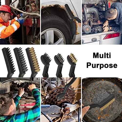 Wire Brushes Pack of 6. for Cleaning Welding Slag, Rust and Dust. 9" and 6-3/4" Brass, Nylon, Stainless Steel Brushes with Rigid Handle