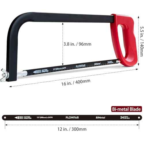 12¡± High-Tension Hacksaw Frame with 24 TPI Bi-metal Blade, Suitable for Metal, Wood, PVC, Carpentry