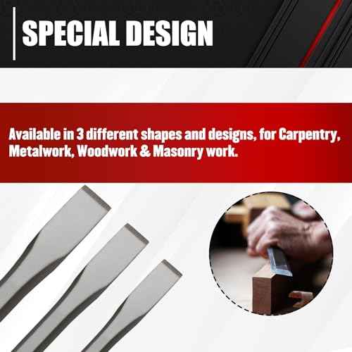 C&T 3-Piece Heavy Duty All Purpose Cold Chisels Kit, 3/8, 1/2, 5/8 in, for Carpentry, Metalwork, Woodwork & Masonry work