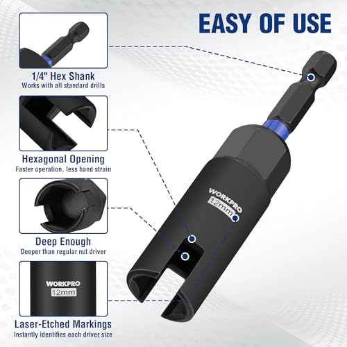 WORKPRO Wing Nut Driver Set 2 PCS, Power Wing Nut Driver Bit (12mm, 12mm), 1/4 Inch Hex Shank Nut Driver, Wing Nut Socket for Wing Nut, Eye Bolt, Wire Twisting