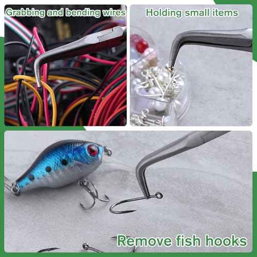 SPEEDWOX Mini Bent Needle Nose Pliers With Teeth 5" 45-Degree Bent Long Nose Pliers With Serrated Jaw Needle Remover Pliers Fishing Tools Precision Pliers For Jewelry Making And Small Object Gripping