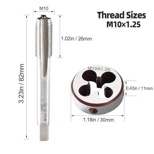 M10 x 1.25 Metric Thread Tap and Die Set, M10 x 1.25mm High-speed Steel Machine Tap Die Set Right Hand