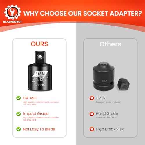 BLACKROBOT 2PCS Impact Socket Adapter and Reducer Set, 3/8" to 1/2" & 1/2" to 3/8" Socket Adapter Set, SAE Drive Cr-Mo Steel Exceeds ANSI Standards, Square Drive Adapter for Impact Driver Wrench