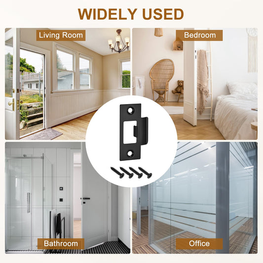 uxcell T Door Strike Plate, 4Pcs 70mm x 40mm 201 Stainless Steel Latch Deadbolt Strike Plate for Door Frame Door Jamb, Black