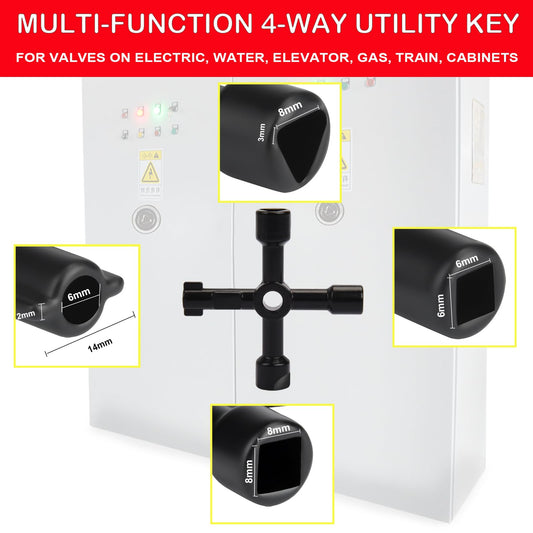 Manalete 17 Inch Water Meter Key with 4-Way Utility Key - Heavy-Duty Water Shut Off Tool for Curb Main, Underground Stop/Waste, Enforced Rebar Steel, T-Handle & U-Head