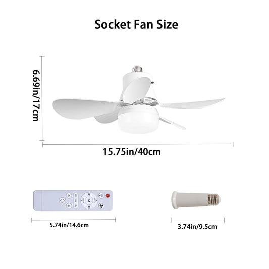 WMBFMWT Socket Fan Light with Remote - Dimmable LED Screw in Ceiling Fan 3 Colors 3000K-6500K, 1000 Lumens Light Bulb Socket Fan Light for Garage Tool Room Bedroom Kitchen Living Room (White)