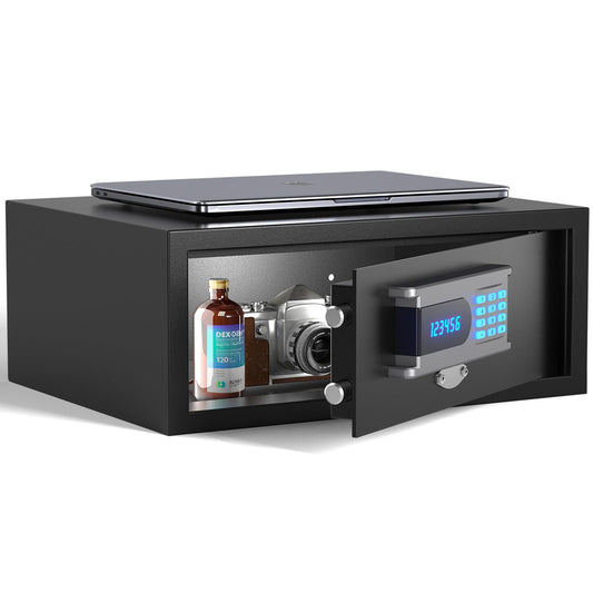 Grimtron Hotel Safe Box (1.36 cu. ft.) with Audit Function, Administrator Password, College Dorm Safe with Silent Mode, LED, and Backlit Keyboard for Documents, Laptop Safe for IPhone, Smart Watch