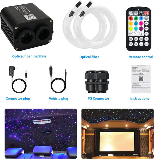 AMKI Dual Color 20W Twinkle Starlight Headliner Kit Mixed 860pcs*9.8ft Cables Fiber Optic Light Cable Sound Activated Music Mode APP/Remote Control Dual Port Light Box for Car Home Roof Decor