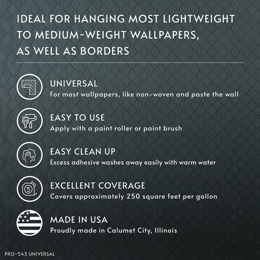 ROMAN’s PRO-543 Universal Border and Wallpaper Adhesive for Home Improvement, White, 1 Gallon (250 Sq. Ft.)