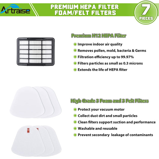Artraise 1+3 Pack Filters for Shark Vacuum Filter Replacement, fit Navigator Lift Away NV350 NV351 NV352 NV355 NV356E NV360 NV370 UV440 UV490 UV540 CU500 Cleaner, Compare to Parts XFF350 & XHF350