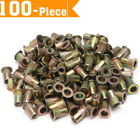100pcs Carbon Steel SAE Rivet Nuts 1/4-20 Threaded Rivet Insert Nutsert Rivnuts Kit