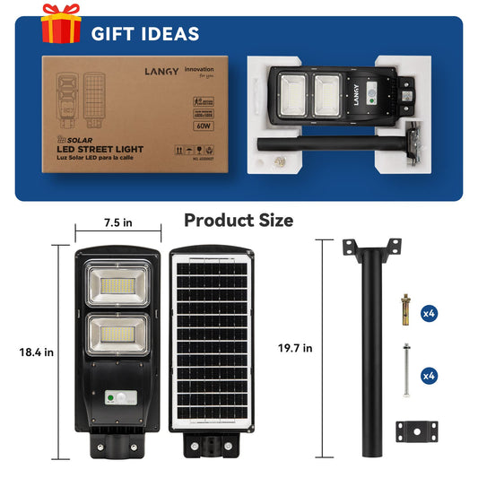 LANGY Upgraded Solar Street Light 6000 Lumens Outdoor,10000mAH Battery,120 LED Street Light Solar Powered with Remote Control,Dusk to Dawn Outdoor Lighting with Motion Sensor,Waterproof