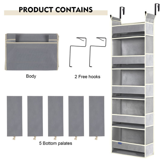 roomtalk Over The Door Organizer 5-Shelves and 10 Side Pockets, Over The Door Storage for Bathroom Bedroom Nursery, Hanging Door Organizer for Baby Diapers and Kids Toys (13"x5"x44", Grey)
