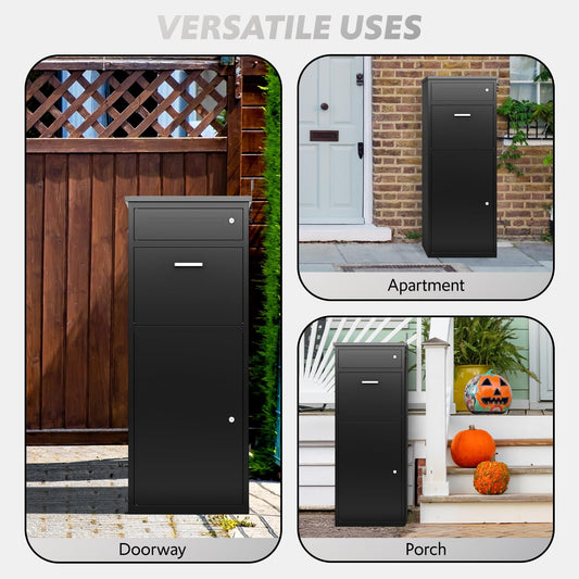 Large Capacity Parcel Drop Box with Secure Locking Function - Cold Rolled Steel Package Delivery Boxes, Weatherproof Freestanding Design for Packages, Mail & Magazines (16.92"x15.74"x44.5")
