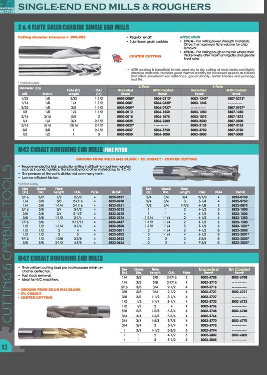 HHIP 5802-0437 7/16" x 3/8" 4 Flute High Speed Steel Single End Center Cut End Mill