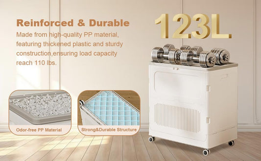 YardGo Dirty Laundry Basket, Laundry Hamper with Lid and Wheels, Rolling Laundry Basket, Waterproof Outdoor Box Storage- Ideal for Clothes Toys Storage, for Laundry, Kids Room, Home Gym(Cream Grey)