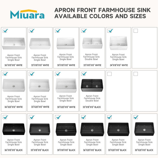 Miuara Farmhouse Sink 33 Inch - Apron Front Kitchen Sink Reversible 33"x18"x10", Undermount Installation, Farm House Style Single Bowl, Solid Fireclay, Glossy White, for Kitchen