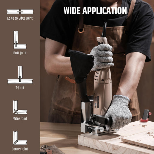 WOODSTARTER Biscuit Cutter Plate Joiner with 8.5Amp12000RPM Motor, Biscuit joiner Tool with Dust Bag & 100 Biscuits, Adjustable Angle & Depth, Ideal for Wood Joinery, Furniture Making