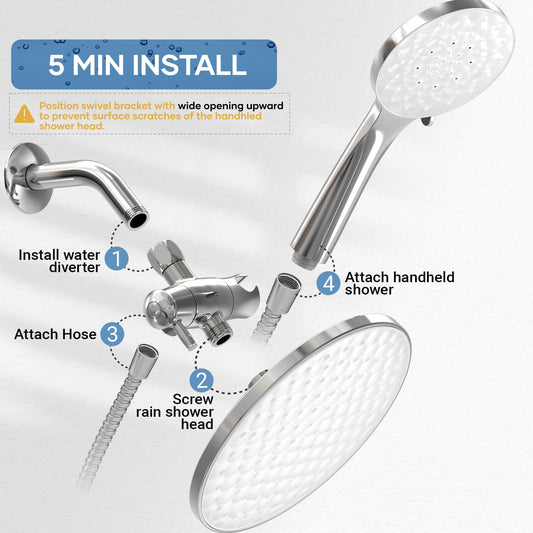UltrTxenova Dual Shower Heads with Handheld Spray Combo, 8.6 Inch Pulsating Rain Shower Head, 6-Mode Hand Held Shower with Hose 6ft, 2-in -1 Luxury Shower System Chrome