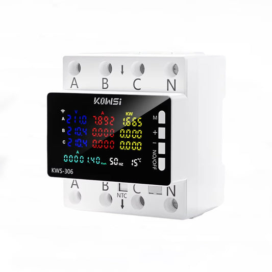 KWS-306WF Energy Meter Power Meter DIN Rail 3 Phase 4 Wire Voltage AC 85-290V Voltmeter Amps Watt Kwh Meter with Color Screen