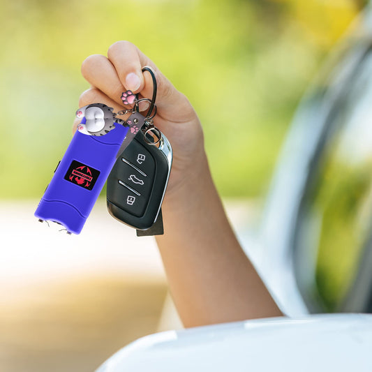 FIGHTSENSE Super Heavy Duty Keychain Stun Gun with Flashlight for Men and Women self Defense Device, Rechargeable Stun Gun, Nylon Holsters (Purple)