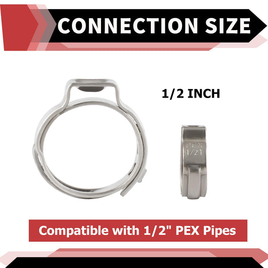 (Pack of 100) EFIELD 1/2-inch Stainless Steel Pex Cinch Clamp Rings for Pex Tubing Pipes,(CLAMP016)