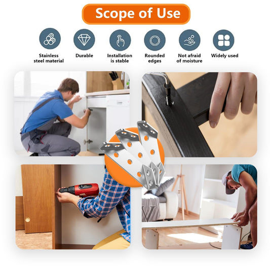 Bigwaves 20pcs Corner Bracket,Universal Stainless Steel Furniture Corner Connector, Heavy Duty Triangular Support Angle Brackets for Wood Furniture, Cabinets, Tables, and Chairs
