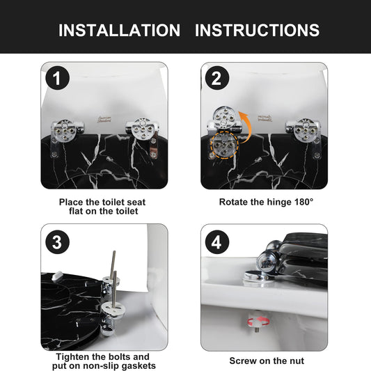 Angel Shield Marble Toilet Seat Durable Molded Wood with Quiet Close,Easy Clean,Quick-Release Hinges (Elongated,Black Marble)