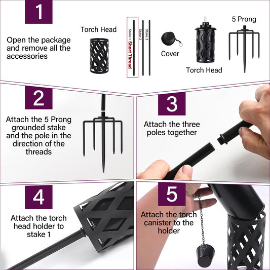 ZSPENG Upgraded 60 Inch Citronella Torches for Outside Set of 4, 16 Oz Outdoor Garden Torches with 5-Prong Grounded Stake, Metal Torch for Garden DΓ©cor, Outside Torches for Backyard, Garden, Patio