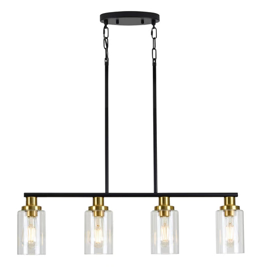 KPIOK Island Lights for Kitchen, 4-Light Farmhouse Dining Room Light Fixtures Over Table, Matte Black and Gold Linear Chandeliers for Dining Room,Industrial Pendant Lighting with Clear Glass Shade
