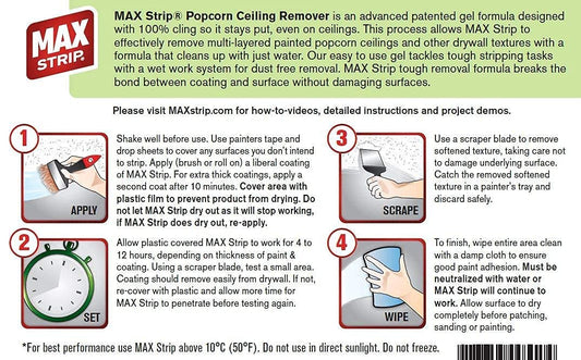 Max Strip Professional Strength Painted Popcorn Ceiling Remover - 1 Gallon - No Methylene Chloride No NMP Powerful No Drip Gel Formula