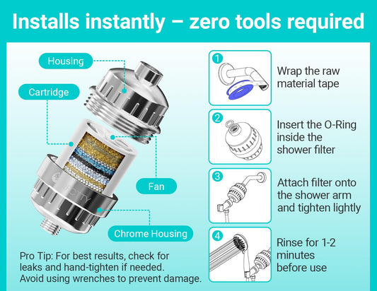 20 Stage Shower Head Filter,Revitalize Hair,Skin Nails While Purifying Water,Prevent Scale Buildup,High Output Fan Technology Softener Hard Water 99% Remove Lead,Chlorine,Fluoride and Chemicals,Chrome