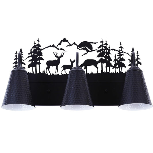 Monaxon Farmhouse Bathroom Vanity Light with Deer Design - E26 Base 3-Light Black Metal Rustic Wall Fixture for Mirror Lighting, and Dressing Table (Large, Bulb Not Included)