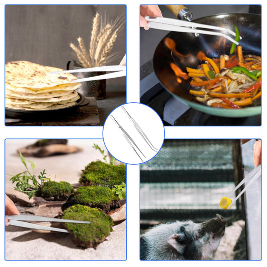 2 PCS 12 Inch Long Handle Tweezers, Straight and Curved Tip Tweezers, Stainless Steel Precision Tweezer Set, Plant Tweezer for Kitchen, Garden, Indoors and Outdoors