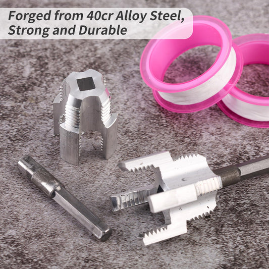 2pcs Integrated Internal & External Pipe Threading Tool, Alloy Steel 1/2” and 3/4” PVC Pipe Thread Cutting Tool Set with 2 Roll Thread Seal Tapes for Electric Drill