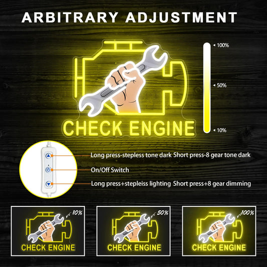 Check Engine Neon Signs for Wall Decor, LED Garage Neon Light Sign for Wall Decor, Christmas Gift for Dad, Boy, 15 * 11 inch USB Powered Neon Sign for Man Cave Auto Repair Shop Workshop Party