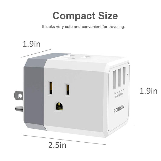 3-Outlet USB Wall Charger and Extender with 3-Way Splitter, ETL Listed - for Home, Office, Cruise Ship