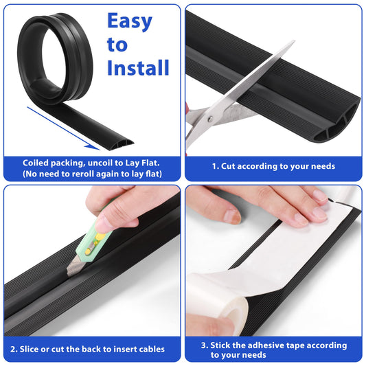 Floor Cord Cover 4ft, Cord Hider Floor Hide Extension Cords, Floor Cable Management Prevent Cable Trips, Floor Cable Cover Wire Covers for Cords, Cable Protector Cord Cavity W0.6in x H0.32in Black