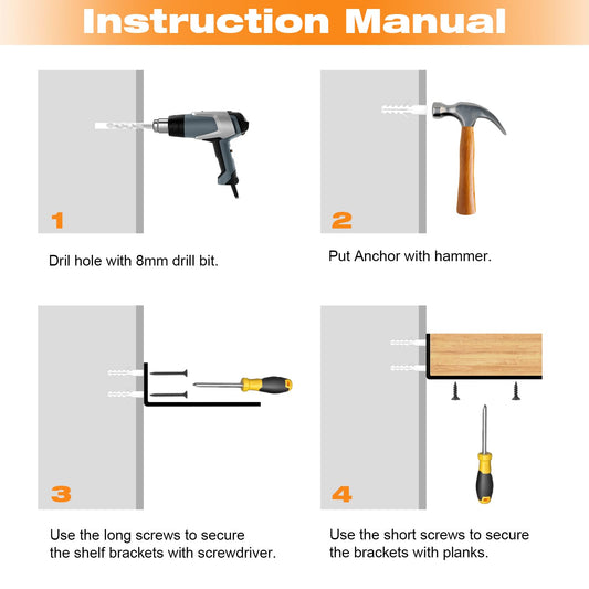 Floating Shelf Bracket 12inch 6 Pack L Brackets for Shelves Black Metal Heavy Duty Shelf Brackets for DIY Decorative with Mounting Hardware