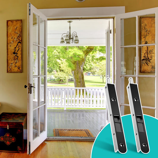 Ceoighe 2 Pack Flush Bolt for Double Door, 7 Inch Heavy Duty Chrome Plating Flush Latch Bolts, French Lock for Opening and Composite Wood Double Dummy Door (Black Plating Color)