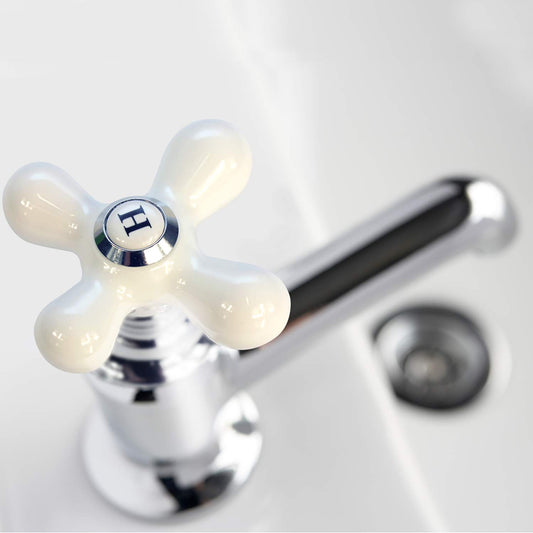 Danco 46004 Cross-Arm Tub/Shower & Sink Faucet Handle, Fits 2-3 Handle Faucets, DOES NOT FIT DELTA & MOEN FAUCETS, Chrome/White Porcelain, 2.25 H (Pack of 1)