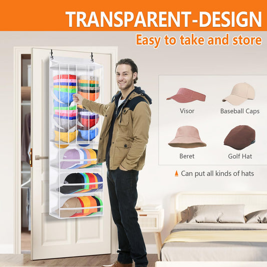 Toread Dual Purpose Over The Door Hat Organizer,Holds 80+ baseball caps Baseball Hat Organizer,Adjustable-hook design Hat Rack For Door,Fits closet/bedroom/pantry Over Door organizer-W