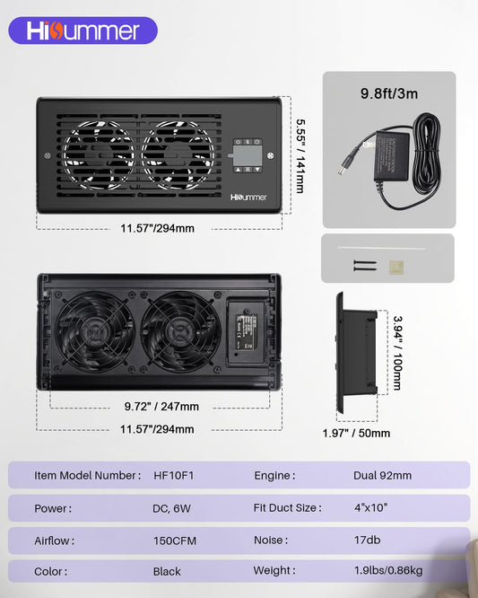 Hisummer Register Booster Fan, Quiet Vent Fan for 4" x 10" Duct Openings, 10-Speed Air Boosting Register, Remote Control AC Booster Vent for Home Heating & Cooling Solutions