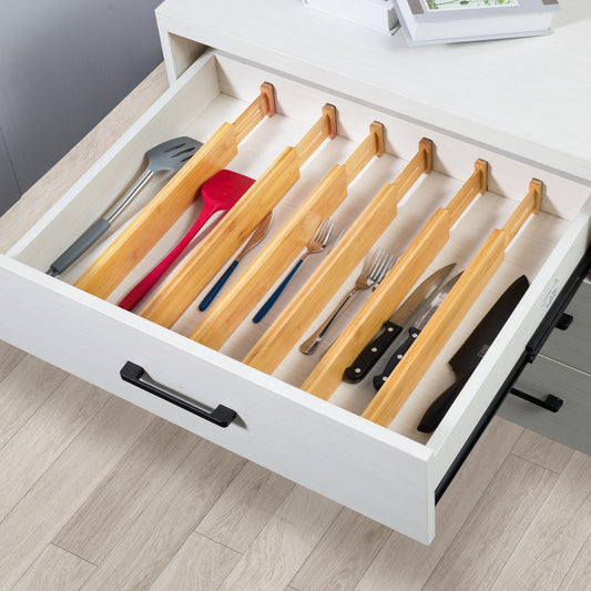 VaeFae Adjustable Bamboo Drawer Dividers, Expandable Drawer Organizer for Kitchen, Bedroom, Bathroom, Dresser and Office, 6-Pack