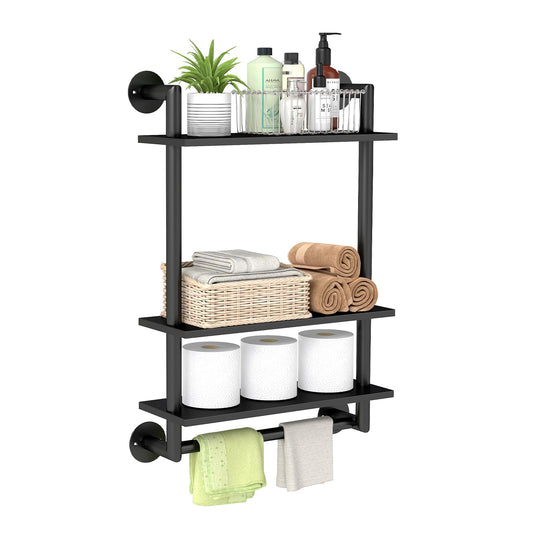 Bathroom Shelves Wall Mounted, 3 Tier Towel Racks with Towel Bar, 26in Stainless Steel Floating Pipe Shelves Over Toilet, Wall Shelves for Bathroom Laundry Room Kitchen Storage