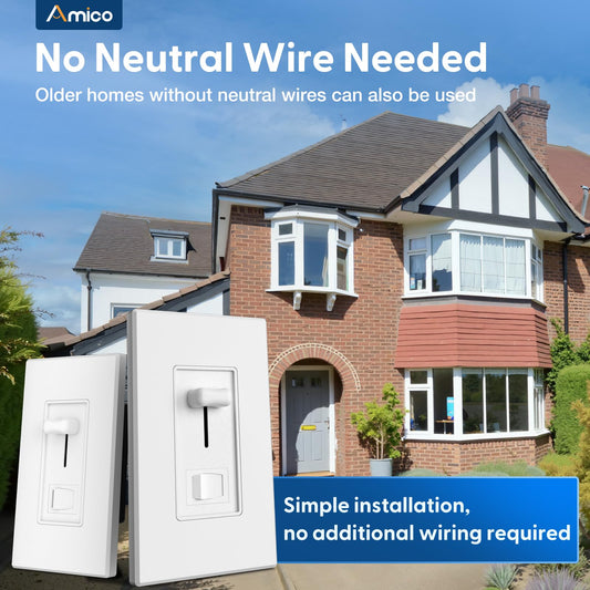 Amico Dimmer Light Switch, Single-Pole or 3-Way Slide Dimmer Switches for Led Lights, Suitable for 250W Dimmable LED/CFL Lights and 300W Incandescent/Halogen, Wall Plate Included, White, 1 Pack