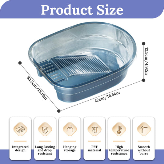 Washboard Basin 17x13x5 Inch Integrated Washboard with Non-Slip Pad Heavy Duty PET Wash Board for Hand Washing Clothes, Transparent Blue, Wash Board