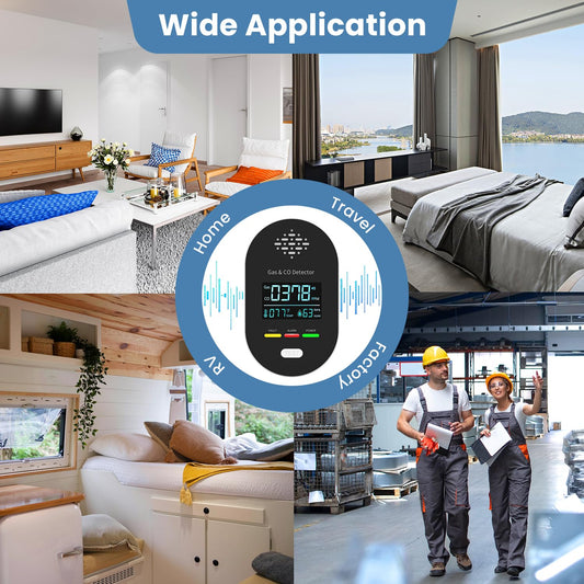 Carbon Monoxide Detectors,Plug in CO and Natural Gas Detector, Combination Gas & Carbon Monoxide Detectors for Travel with Temperature Humidity Display, 4 in 1 CO & Gas Detector for Home/Travel-Black