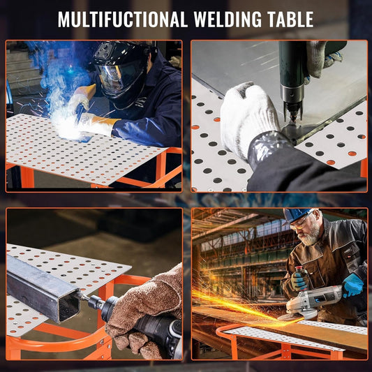 TrailBlaze 36'' x 24'' Welding Table with Wheels, 600 LBS Portable Welding Fixture Table with Handle & Storage Board, 5/8-inch Fixture Holes Tool Slots, Movable Steel Welding Workbench Table for Shop