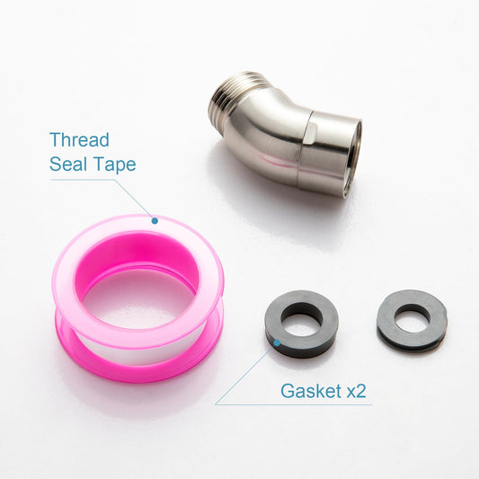 OFFO Shower Head Elbow Adapter, Brushed Nickel All Metal Handheld Shower Head Elbow Adapter Shower Arm Angle Adapter 135 Degrees